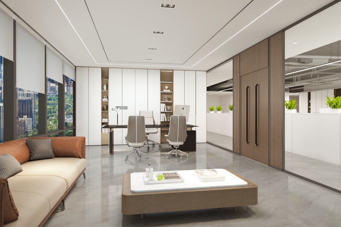 設計介紹:主要展示前臺、洽談區、走廊、貴賓區、會議室、辦公區等各個區域辦公室裝修效果圖,設計師們根據不同樓層采用采取不同辦公室裝修風格,現代簡約、莊重凝練兩種風格相互融合,主要以白色為主,更符合的公司形象。